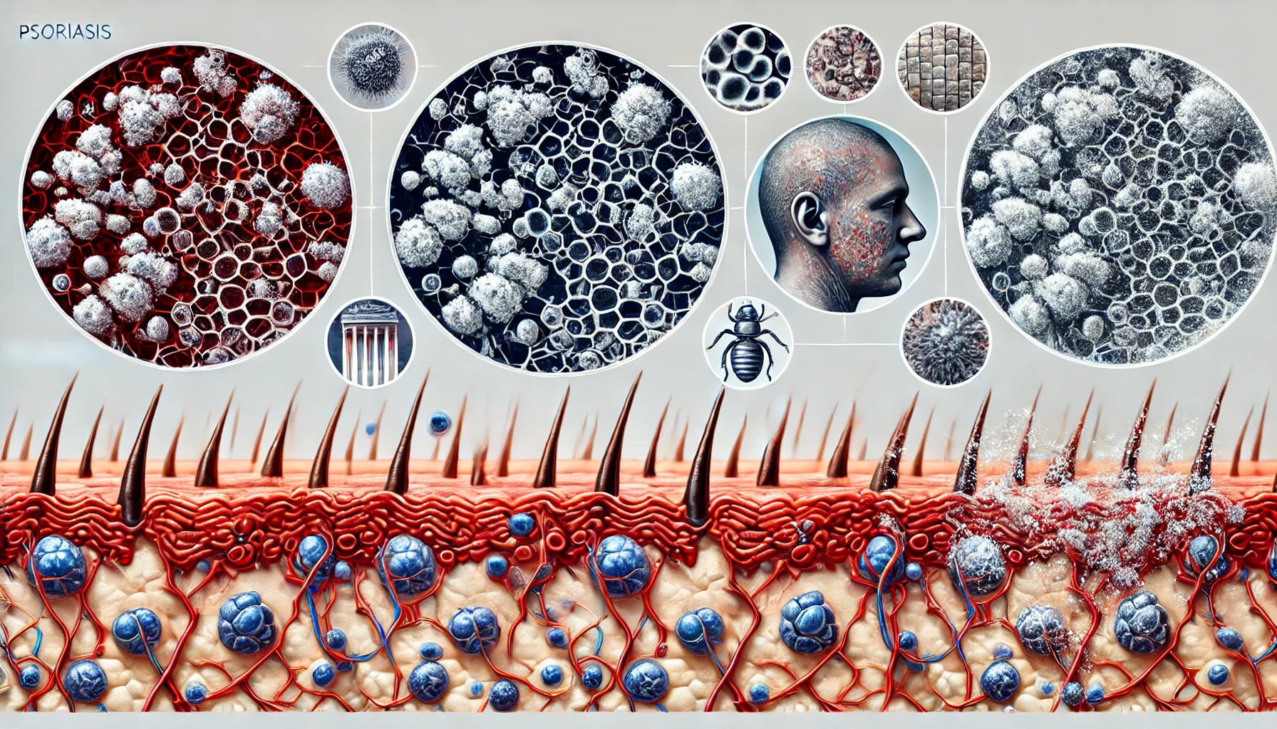 پسوریازیس یک بیماری خودایمنی مزمن است که باعث رشد سریع و غیرطبیعی سلولهای پوستی میشود. این رشد بیش از حد سلولهای پوست منجر به ایجاد نواحی ضخیم، قرمز، و پوستهدار میشود که معمولاً با خارش و سوزش همراه است. پسوریازیس میتواند در هر نقطه از بدن ظاهر شود، اما مناطق معمول بروز آن شامل زانوها، آرنجها، و پوست سر است.